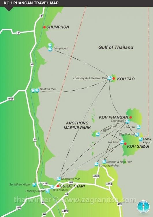 Полная карта маршрутов до Ко Пангана, Ко Самуи, Ко Тао ниже.