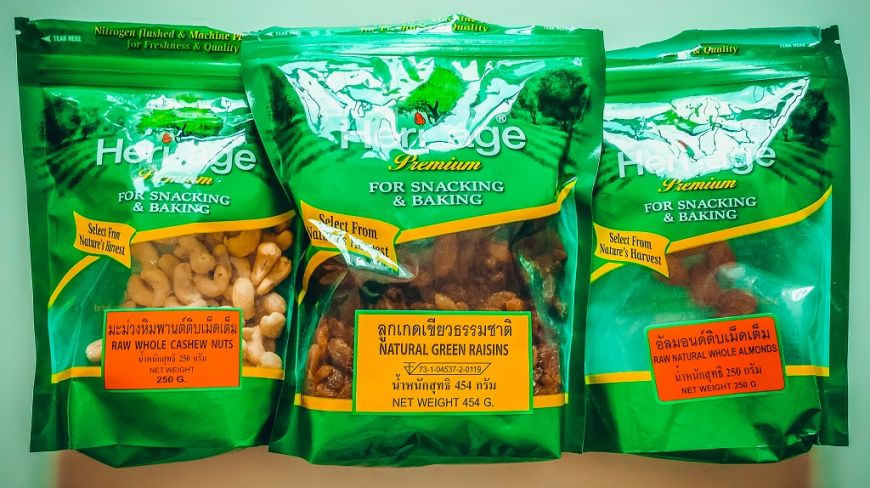 Сначала я не сильно заморачивалась и покупала любые орехи и сухофрукты. Со временем я начала читать упаковки. И то, что на них написано, вряд ли может обрадовать начинающего зож-ника. Большинство сухофруктов вымачивается в сахарном сиропе, а орехи обжариваются на масле с солью. Но только не продукты фирмы Heritage. Фирма производит сырые орехи (они не проходили термическую обработку, а значит, сохранили все полезные вещества) и сухофрукты, высушенные без добавления сахара и подсластителей. Орехи есть разные: грецкие, миндаль (целые орехи, лепестки и стружка), пекан, макадамия, фундук, кешью и многие другие. Среди сухофруктов полюбился изюм и клюква.