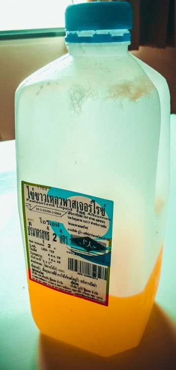 В какой-то степени яйца также можно отнести к мясу и морепродуктам за счет содержания белка. Выбирайте любые (главное, коричневого цвета). Раньше я постоянно выбрасывала желтки, потому как много я их не ем, использую только белок. Моя находка – пастеризованные яичные белки в «Макро». 2 литра этого чуда стоят меньше 200 батов. Найти их можно в холодильнике с сырами и маслом. Там же бывают и желтки, но они мне не нужны, конечно.