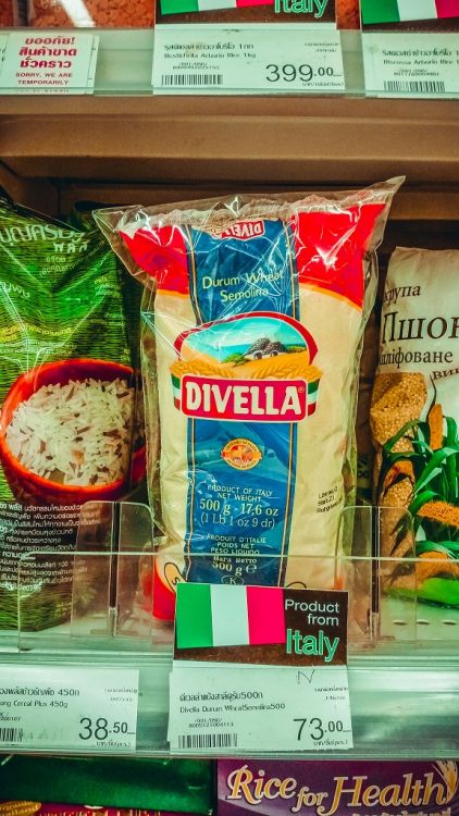 Другие источники полезных углеводов – макароны из цельнозерновой пшеницы. В Паттайе почти все макаронные изделия хорошие. В составе только цельносмолотая мука (durum)и вода. Я выбираю макароны с наибольшим содержанием белка (не менее 12 граммов).